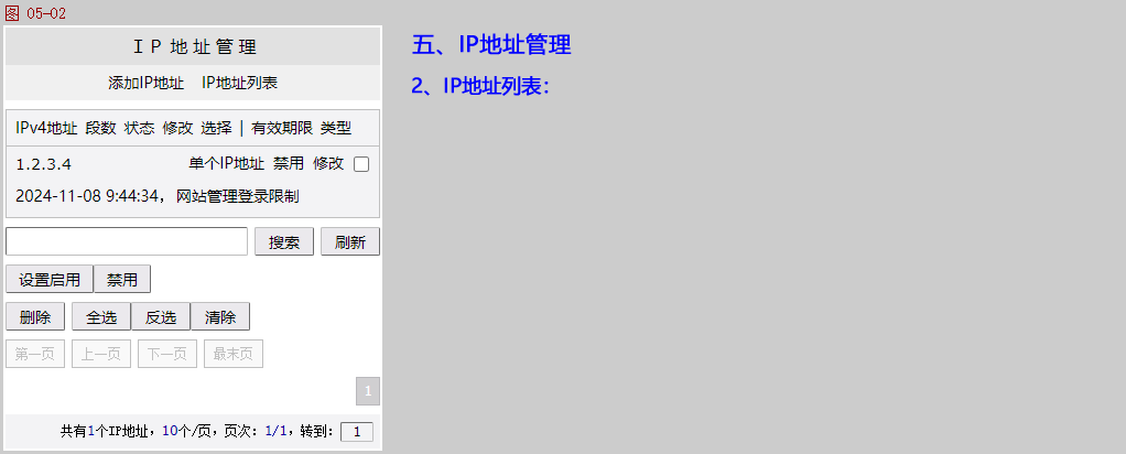 IP地址管理:允许/限制某个/某段IP地址访问网站系统。